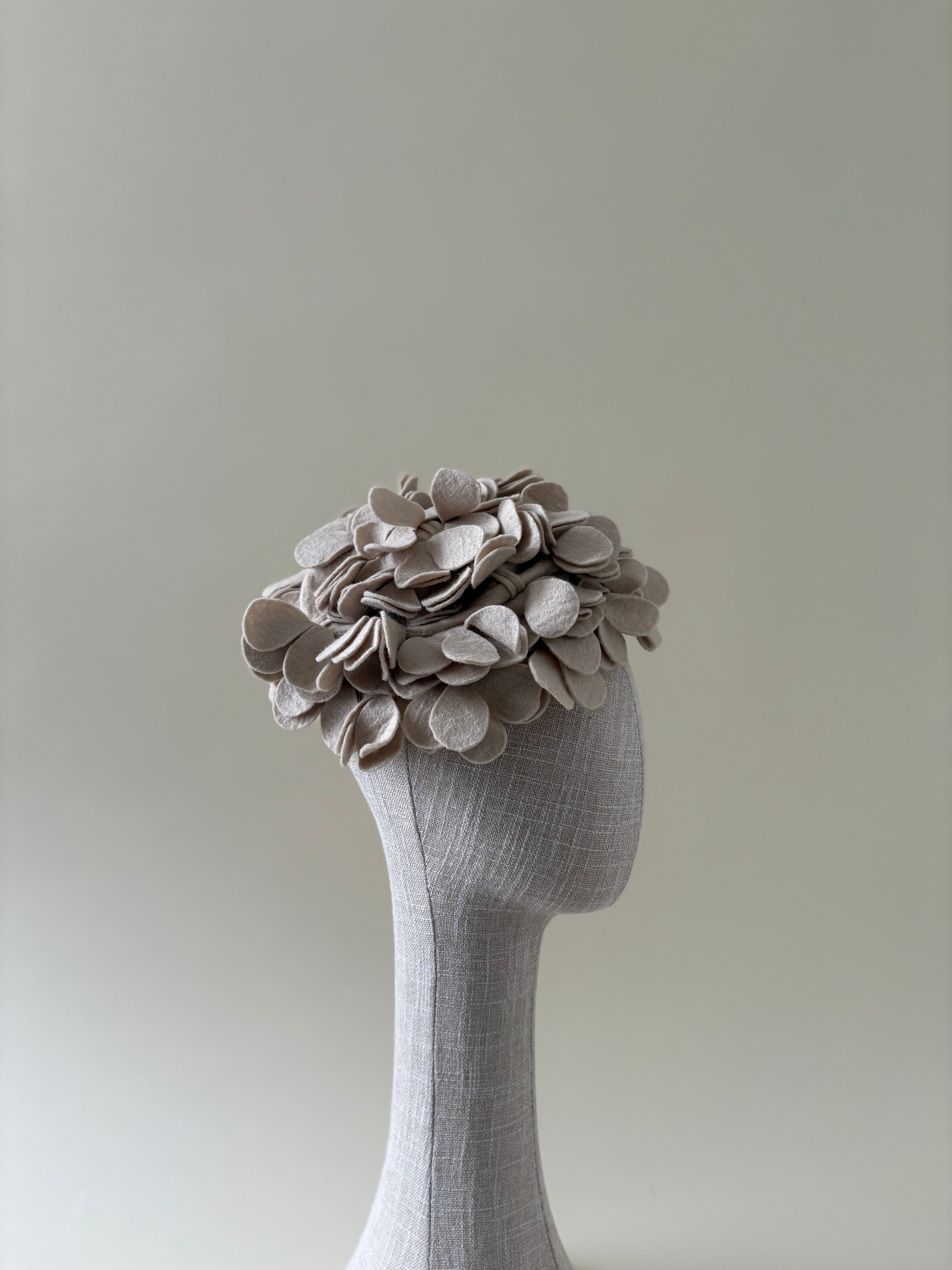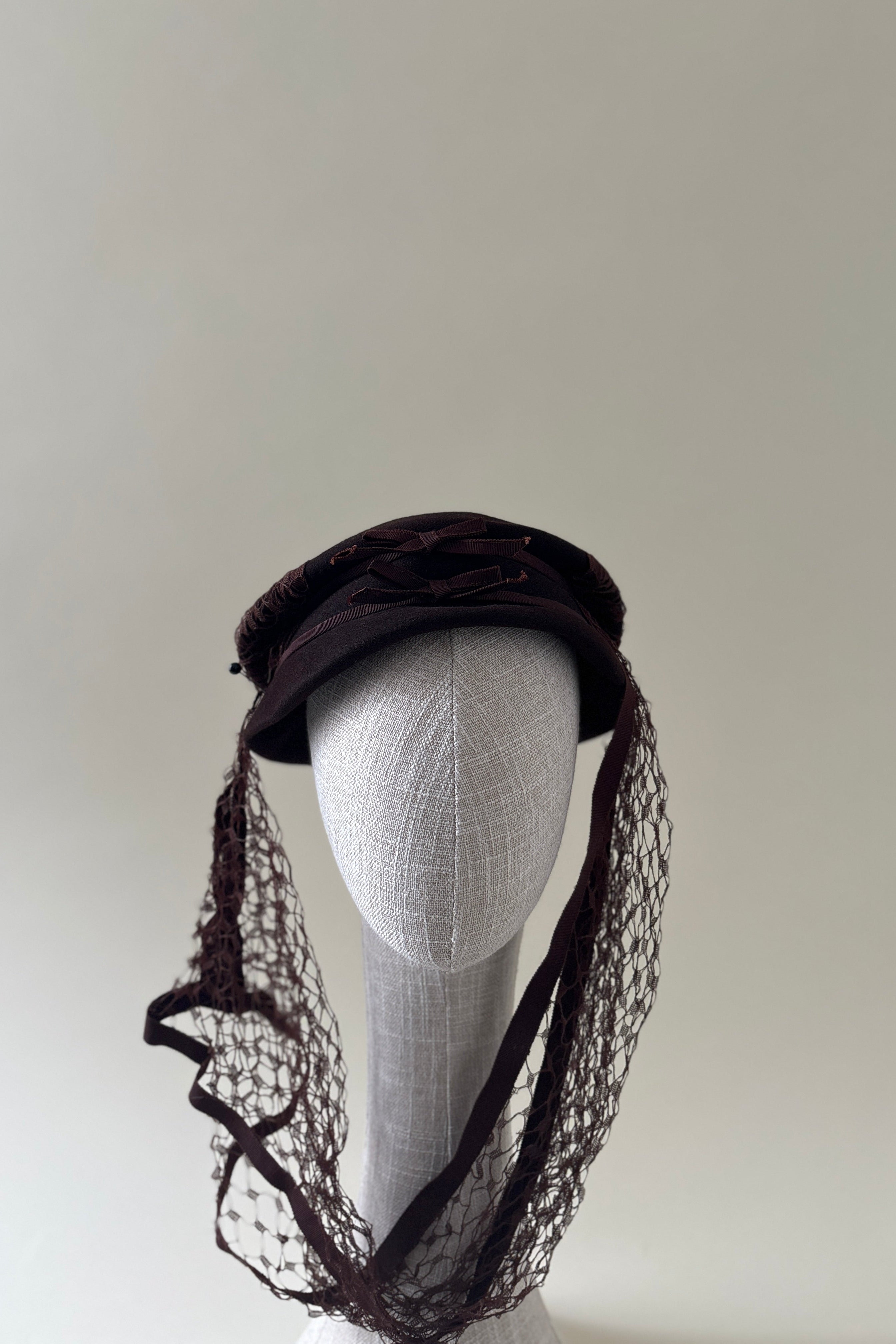 Hats are delicate objects and are easily crushed or misshapen when improperly stored or donated. Each vintage hat in this collection has been carefully evaluated and given the care it needed to be worn again. Some have been reshaped, others gently cleaned, and a few refreshed with new ribbons, flowers, or veils, often using vintage materials from my own archive. Every intervention was made with restraint, preserving the original character and craftsmanship of the piece.