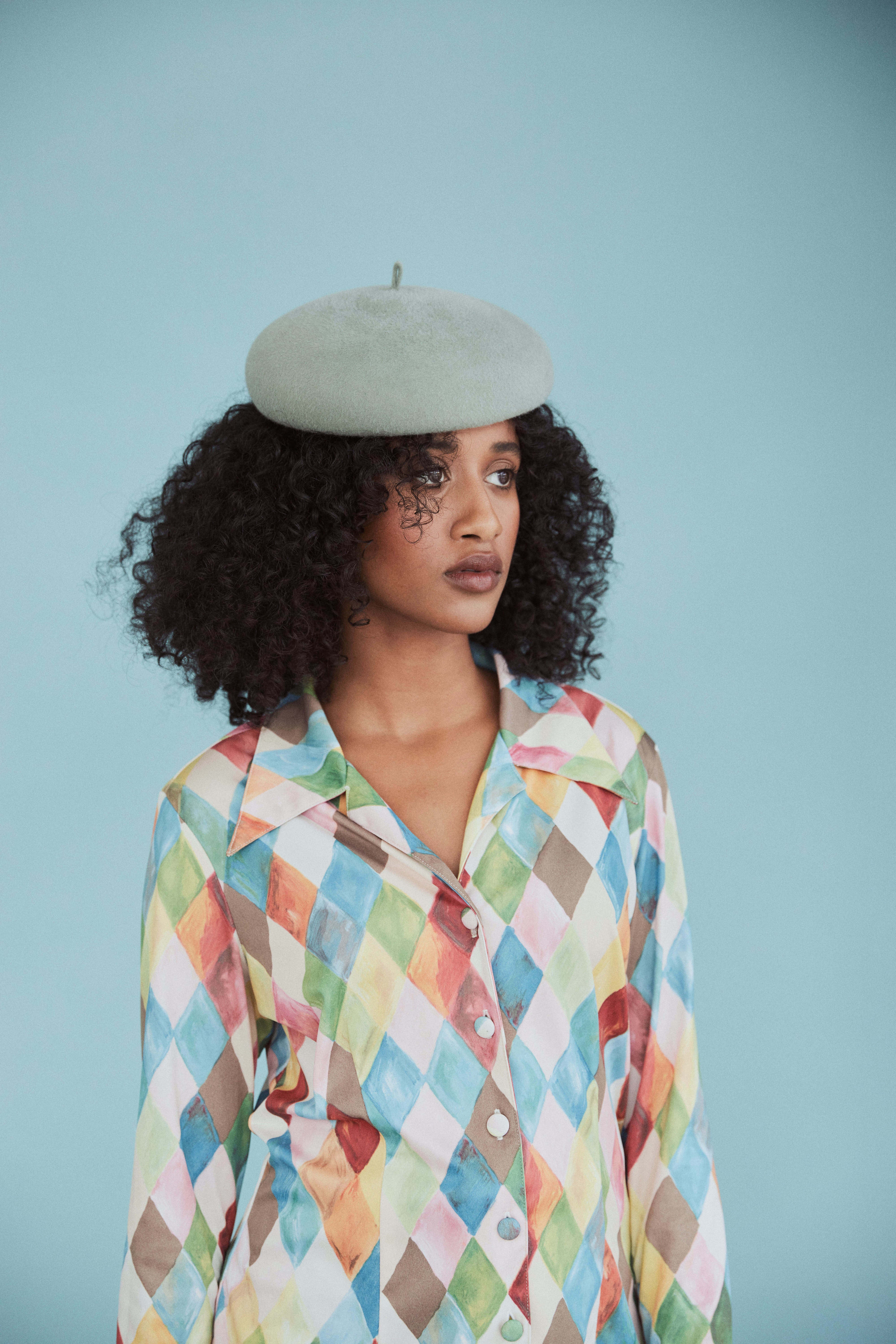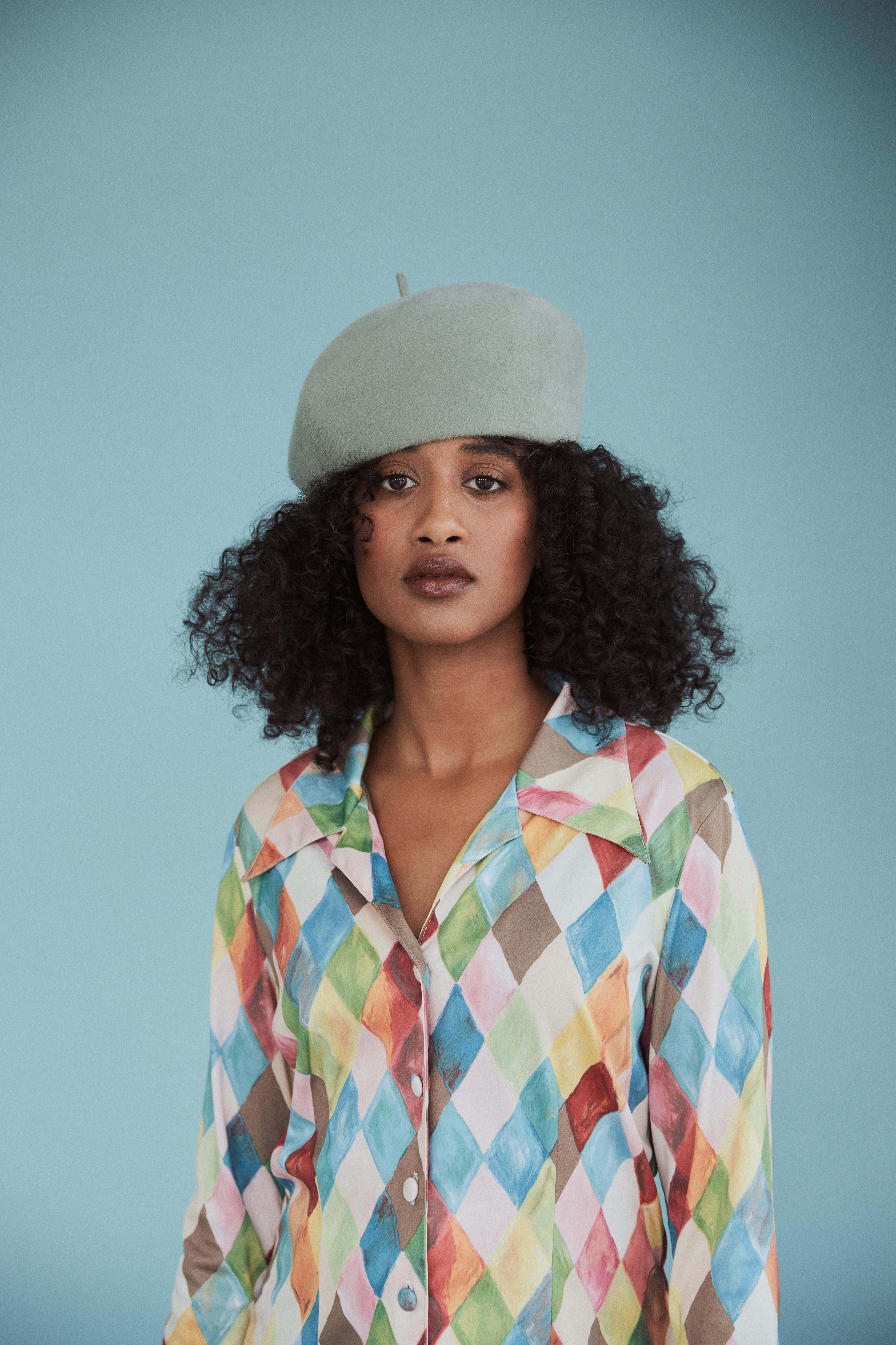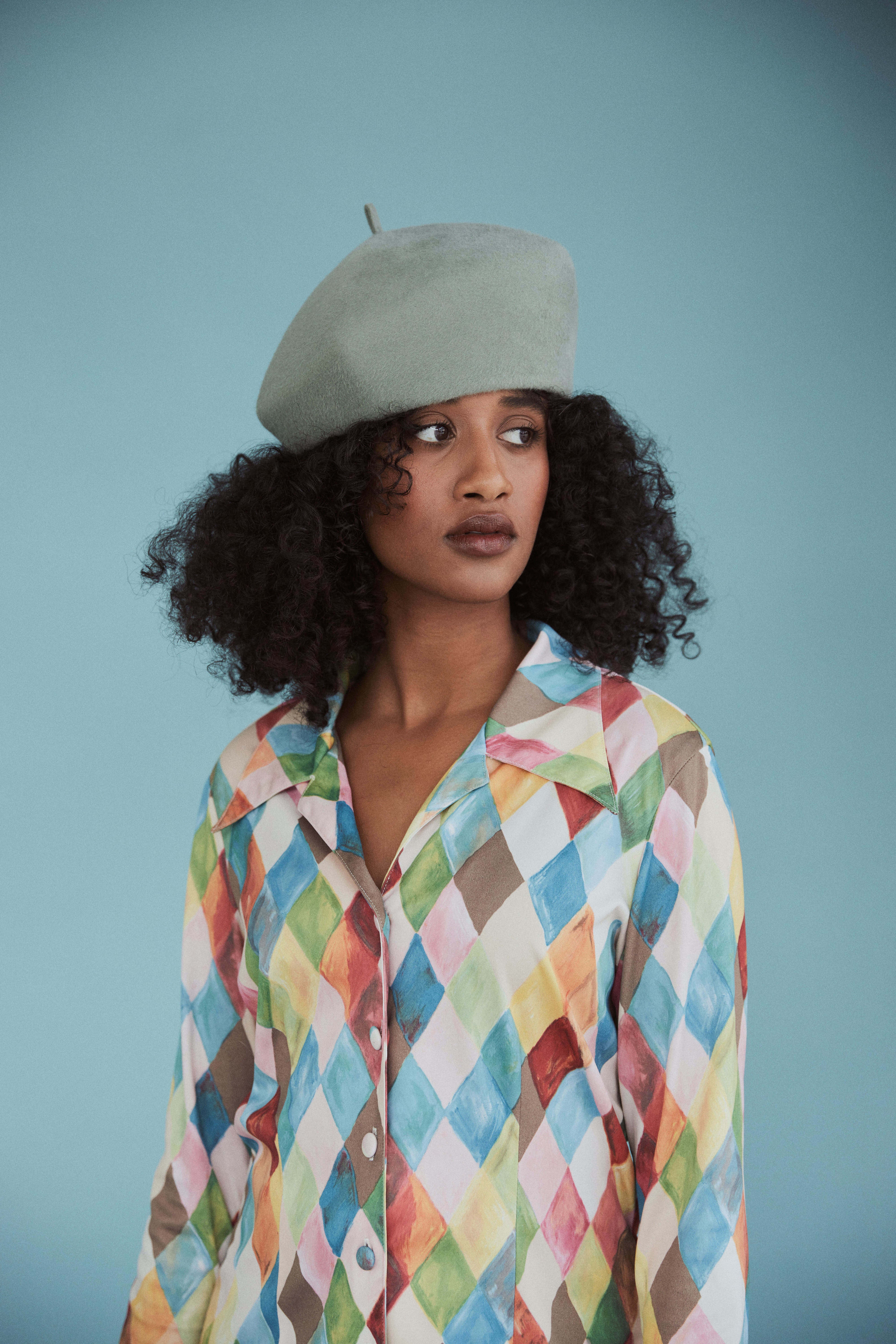 Harbin - Sculptural Structured Beret in Velour Rabbit Felt - Sage green