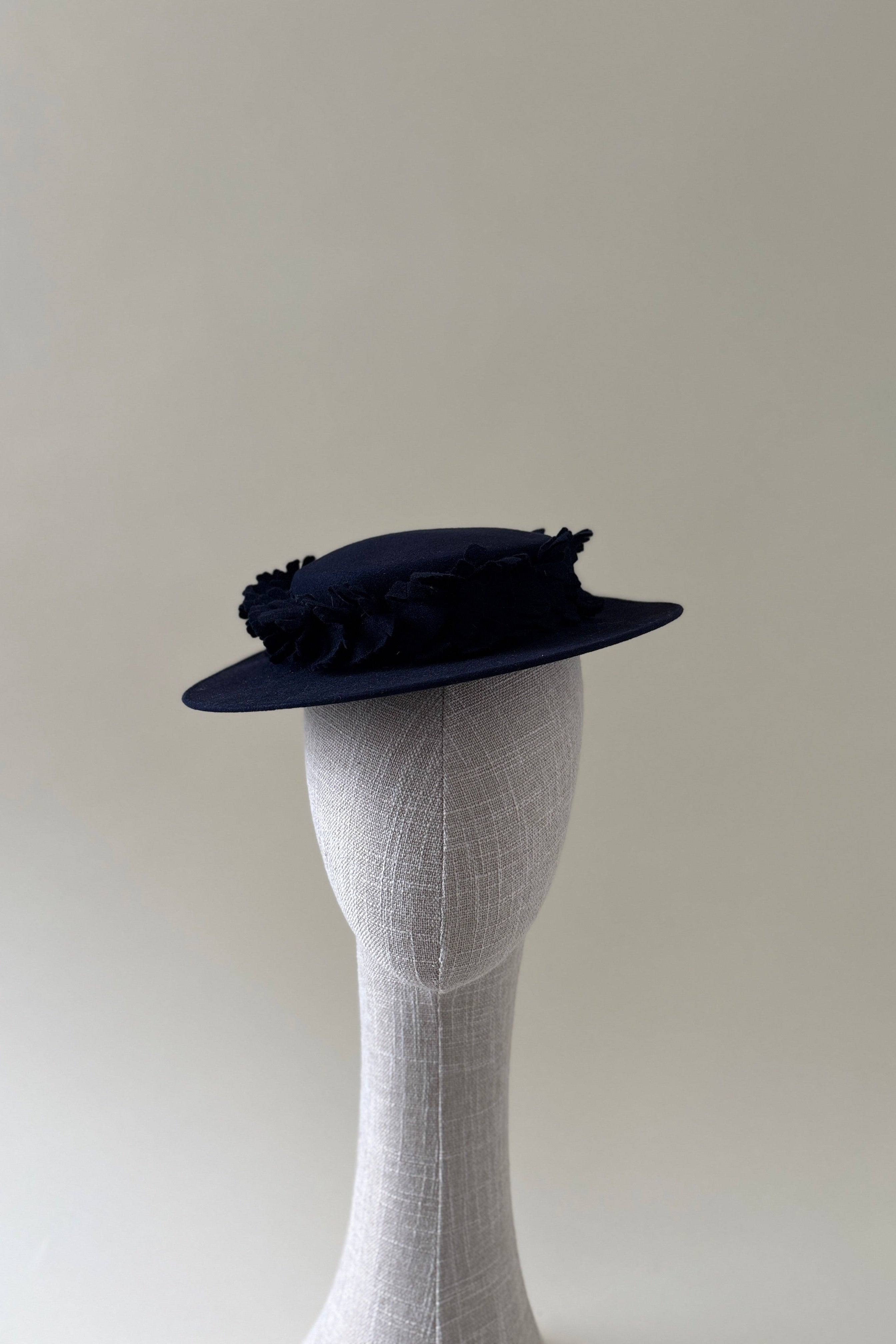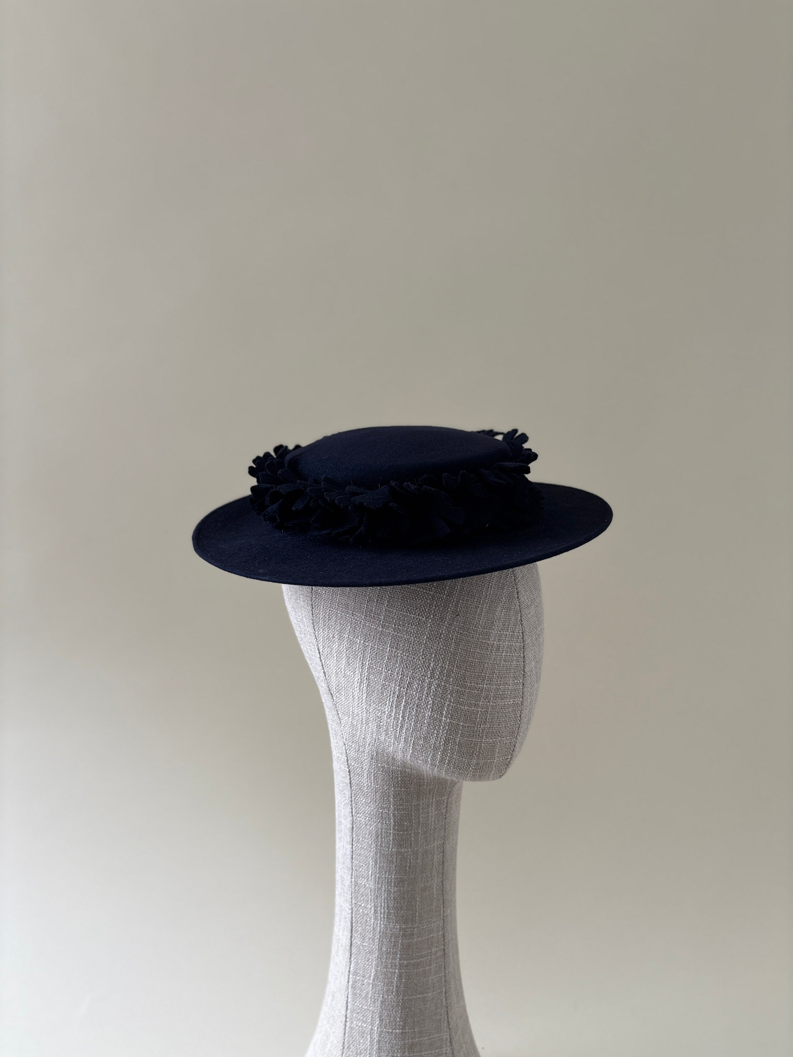 Vintage hat #045 | 1980's Navy blue fur felt boater with felt trims