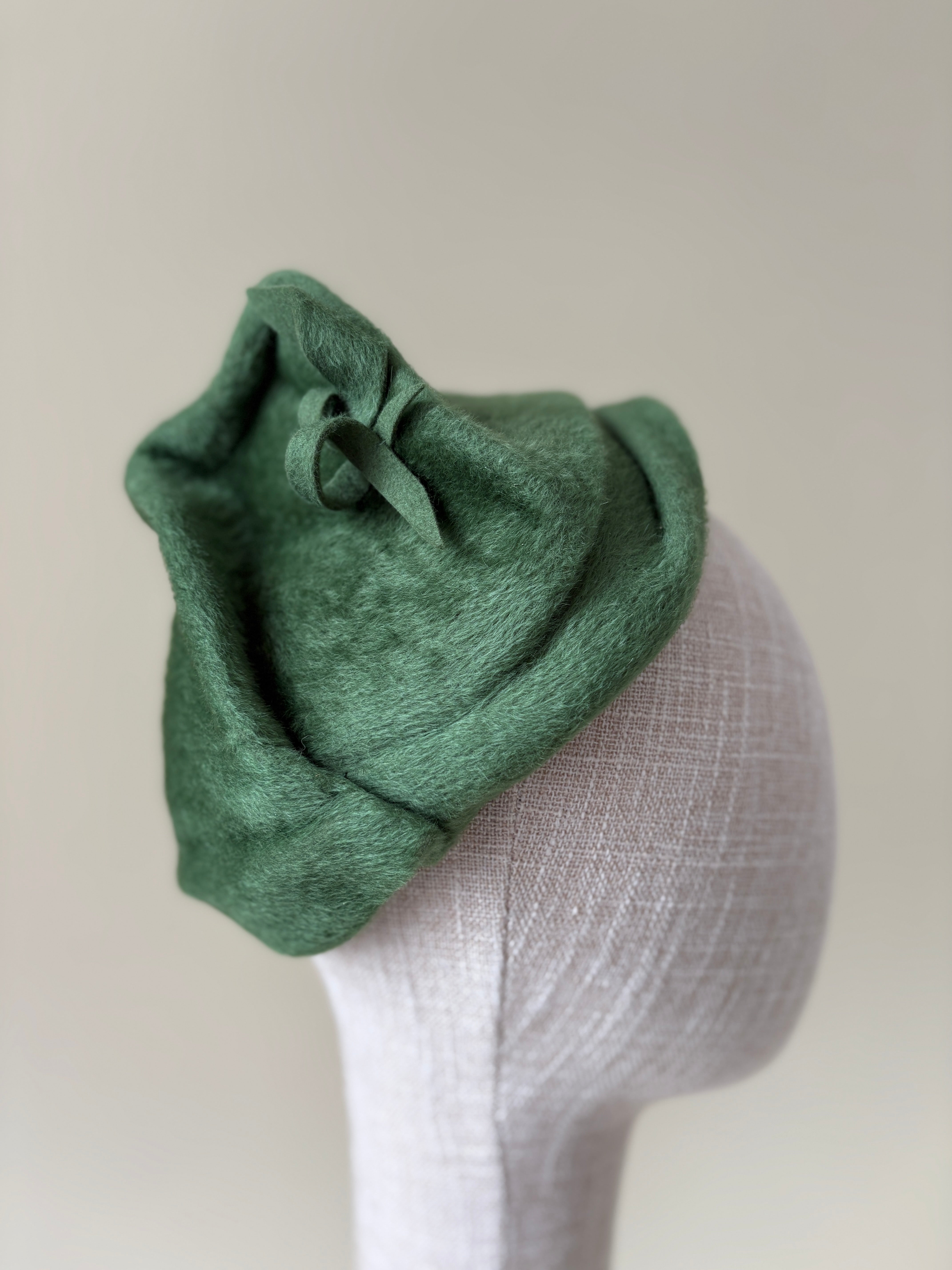 Vintage hat #036 | 1940's Pea green draped fur felt half hat