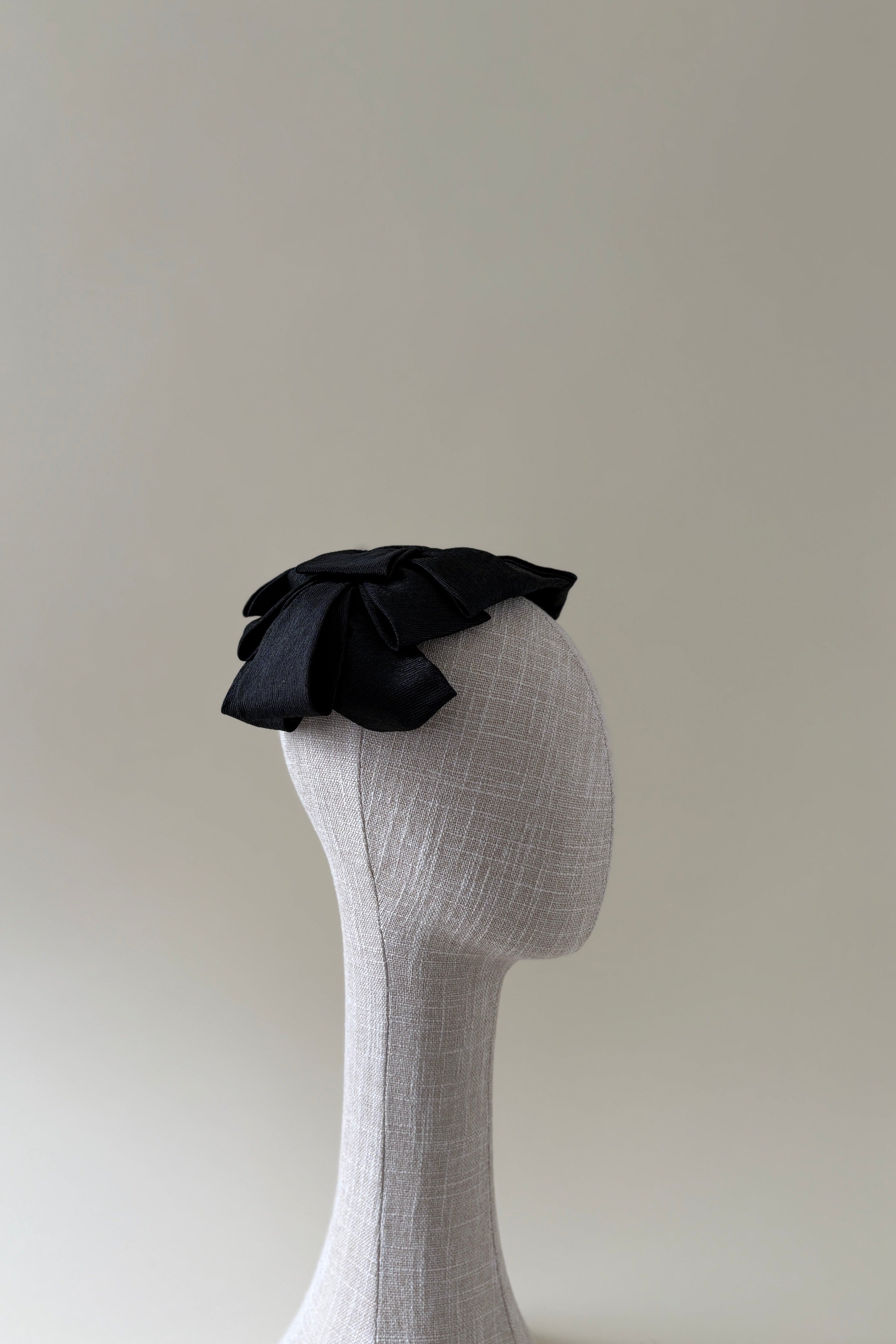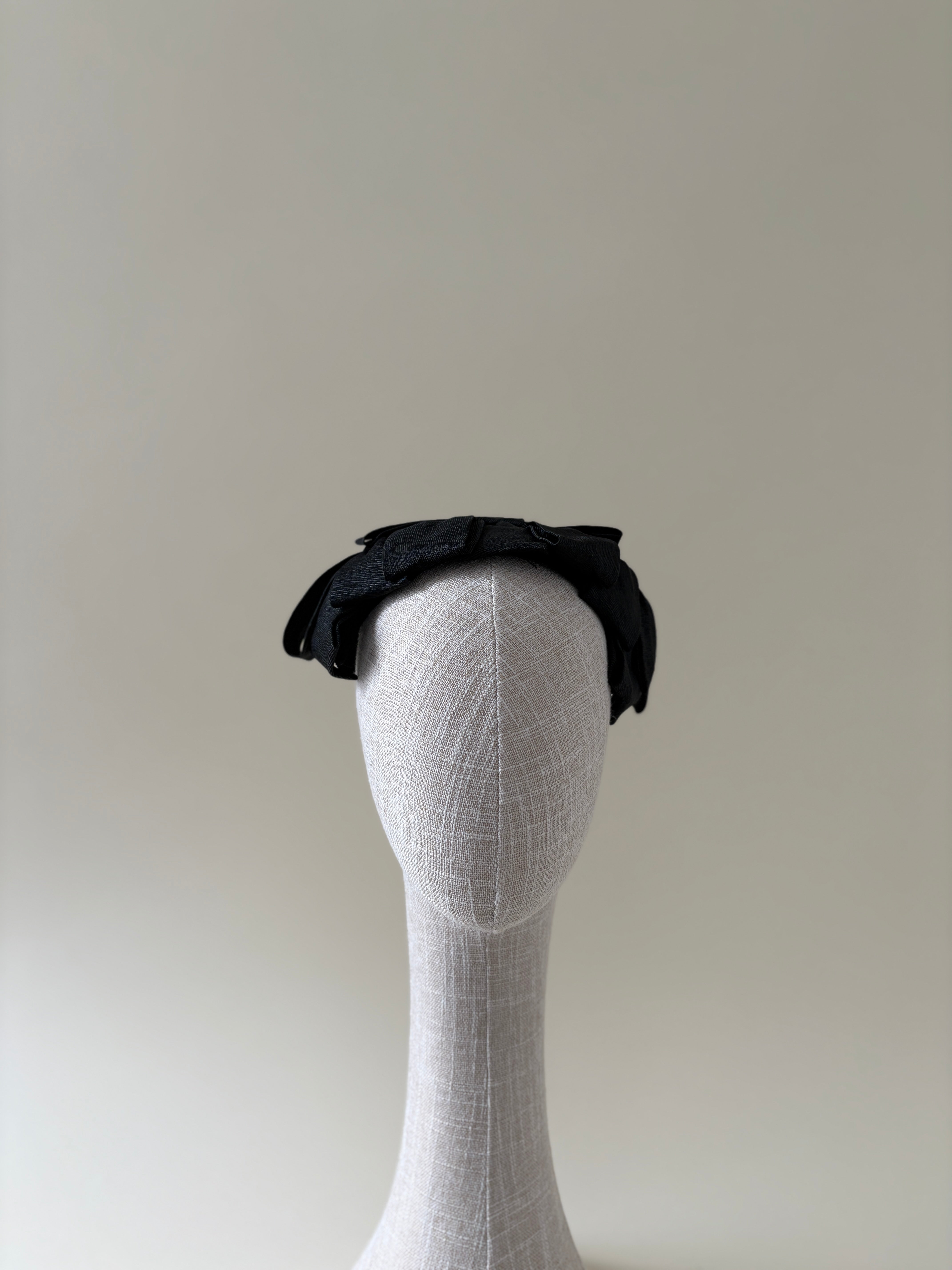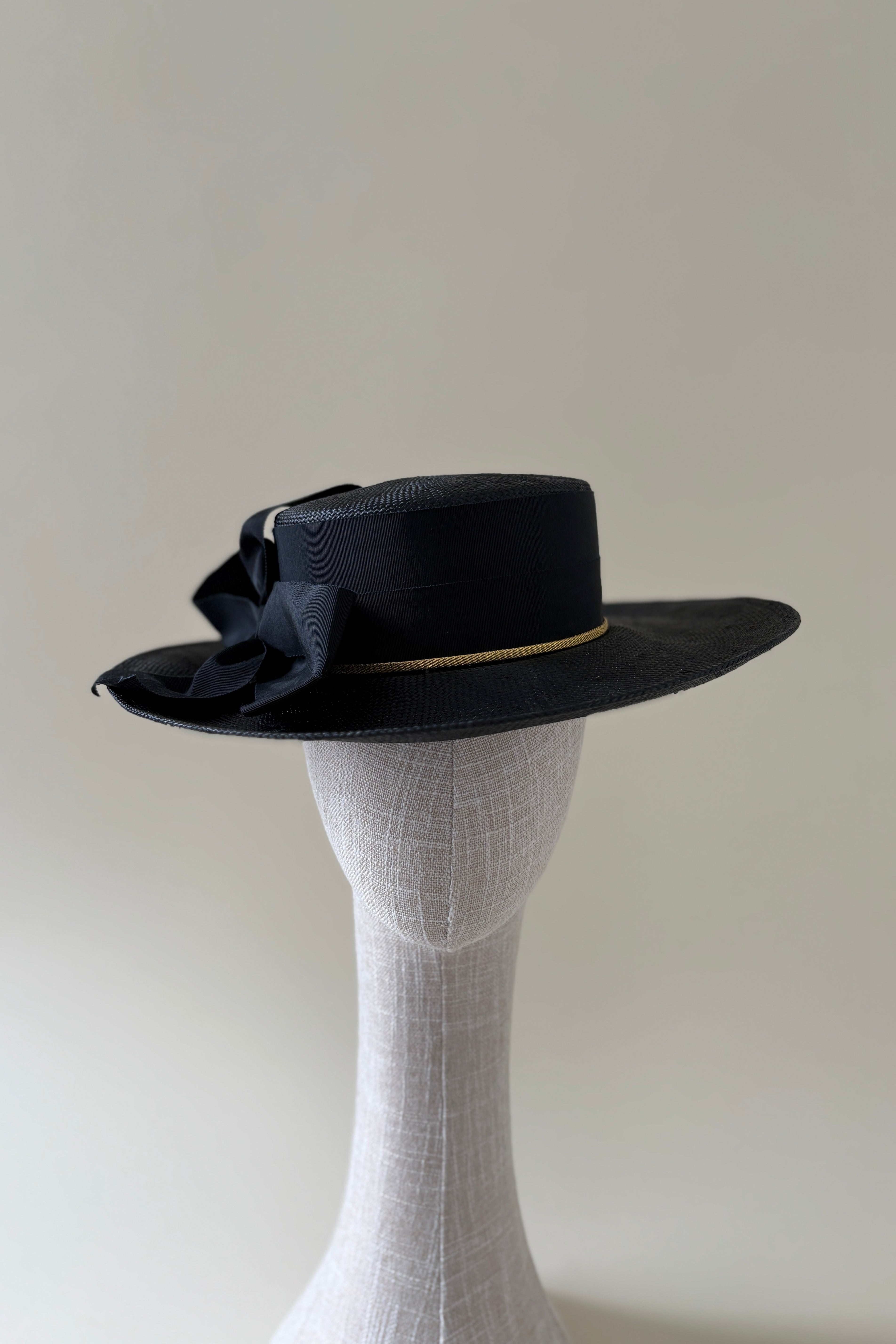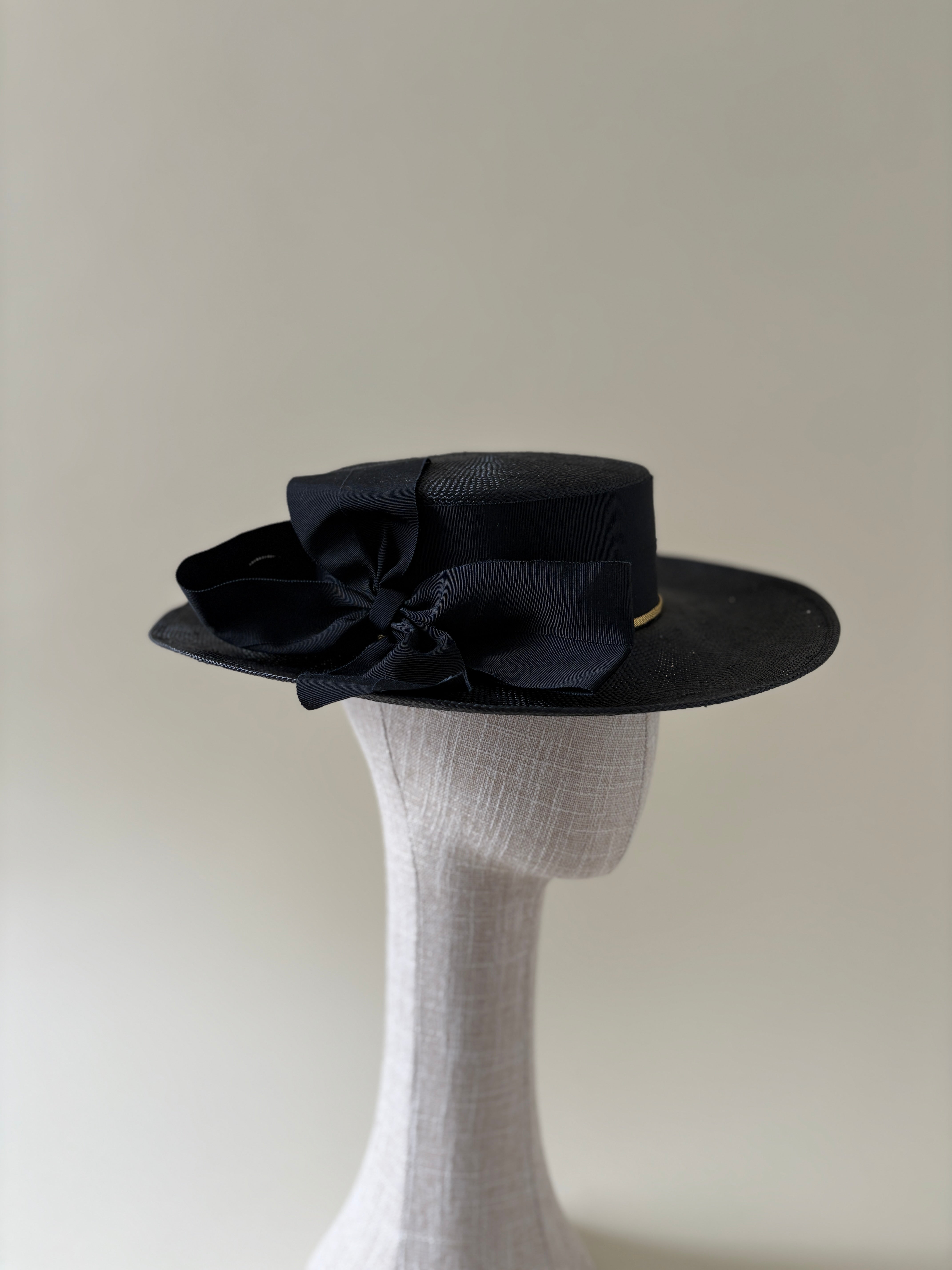 Vintage hat #004 | 1980's Black straw hat with black bow