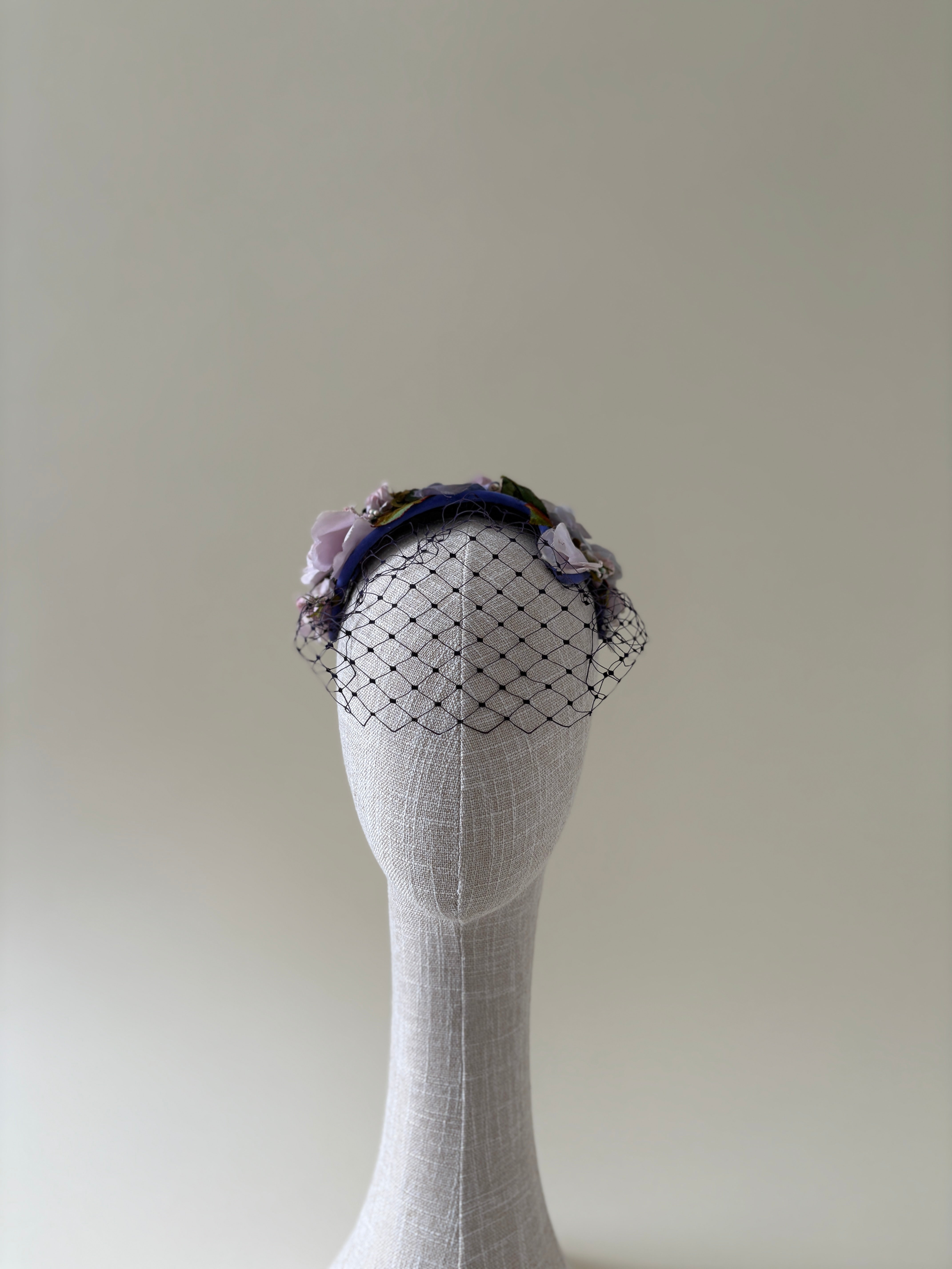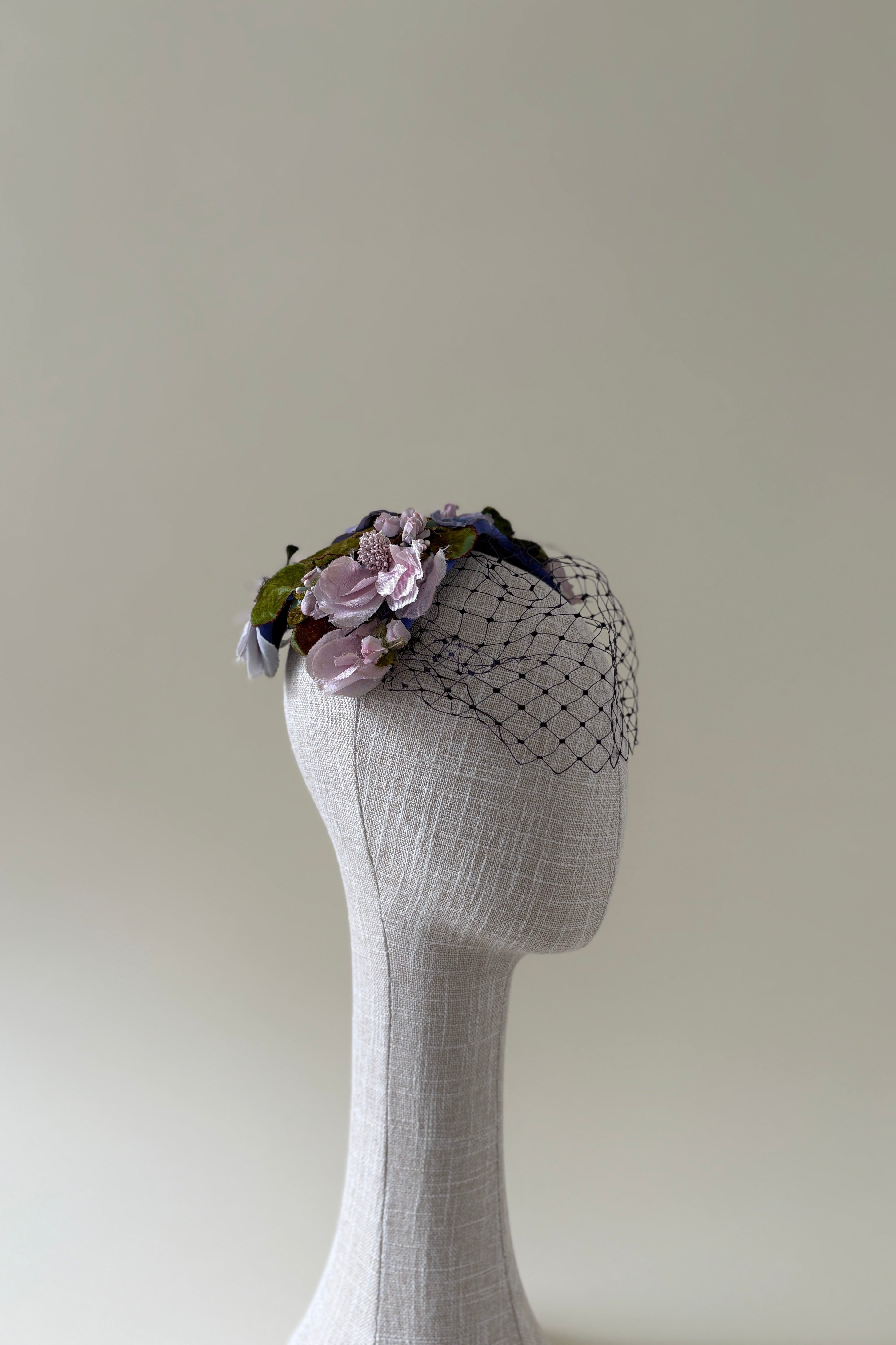 Vintage hat #026 | 1950's Lilac floral half hat with purple veil