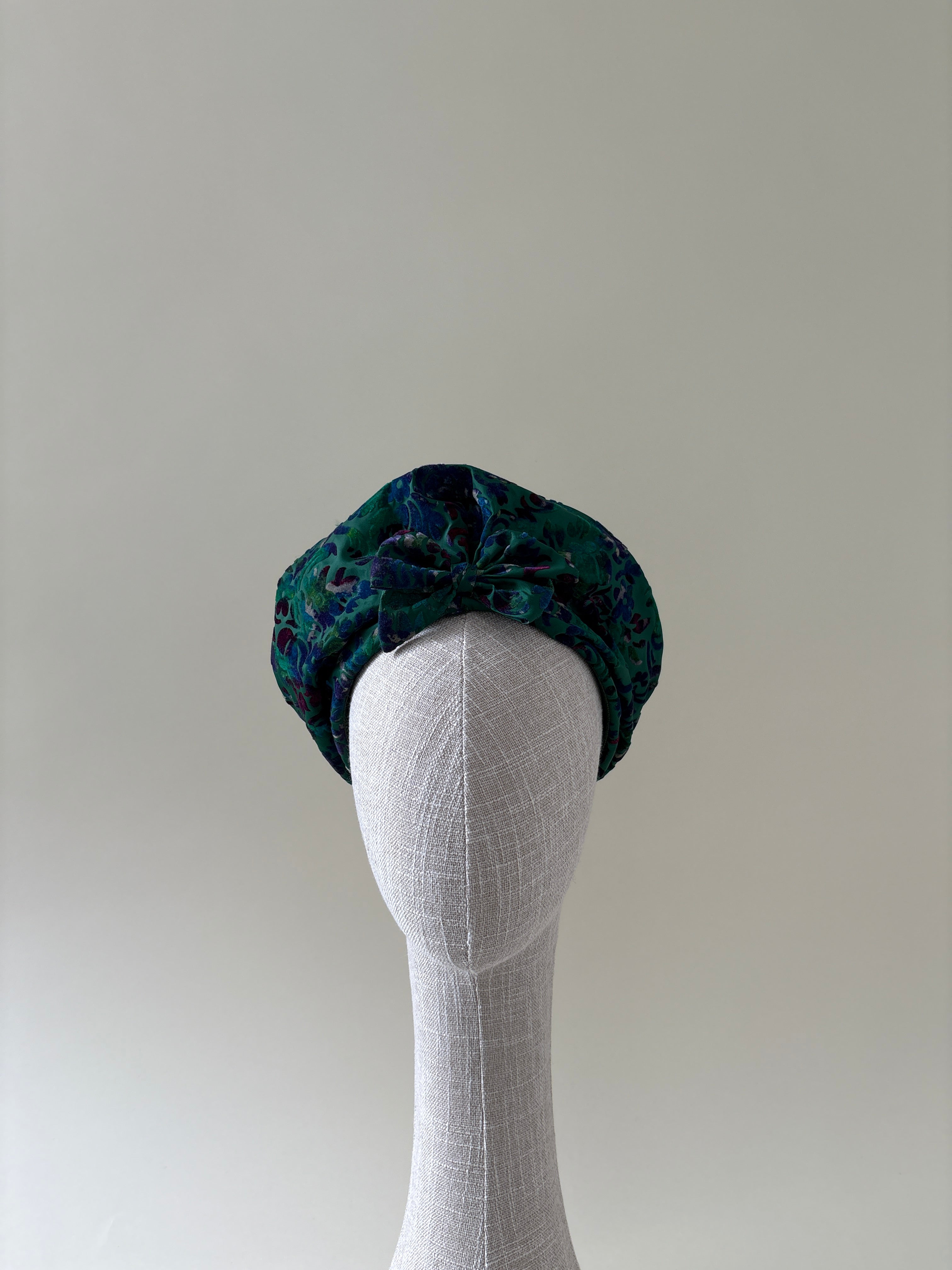 Vintage hat #033 | 1960's Draped green velvet toque with bow