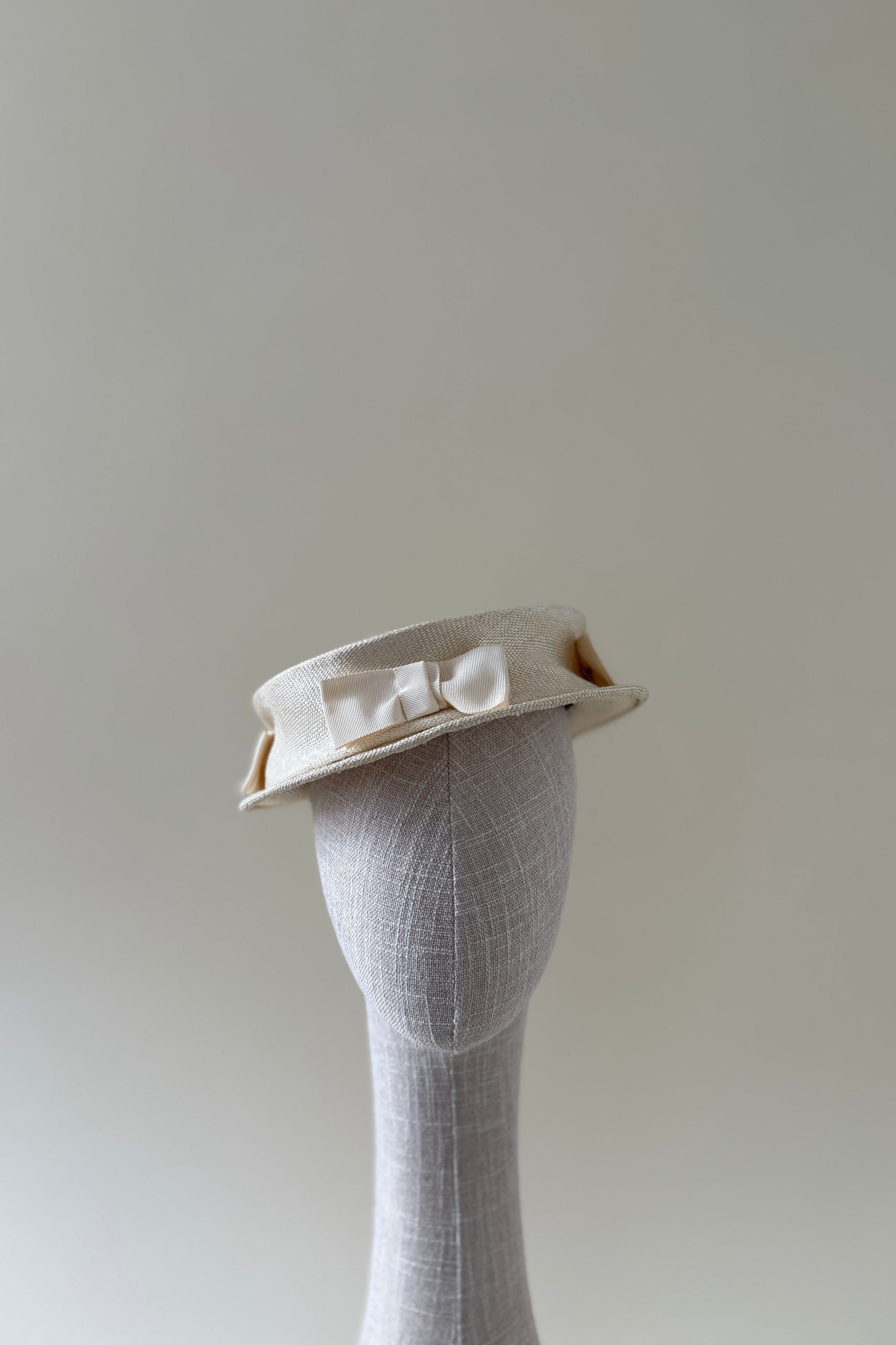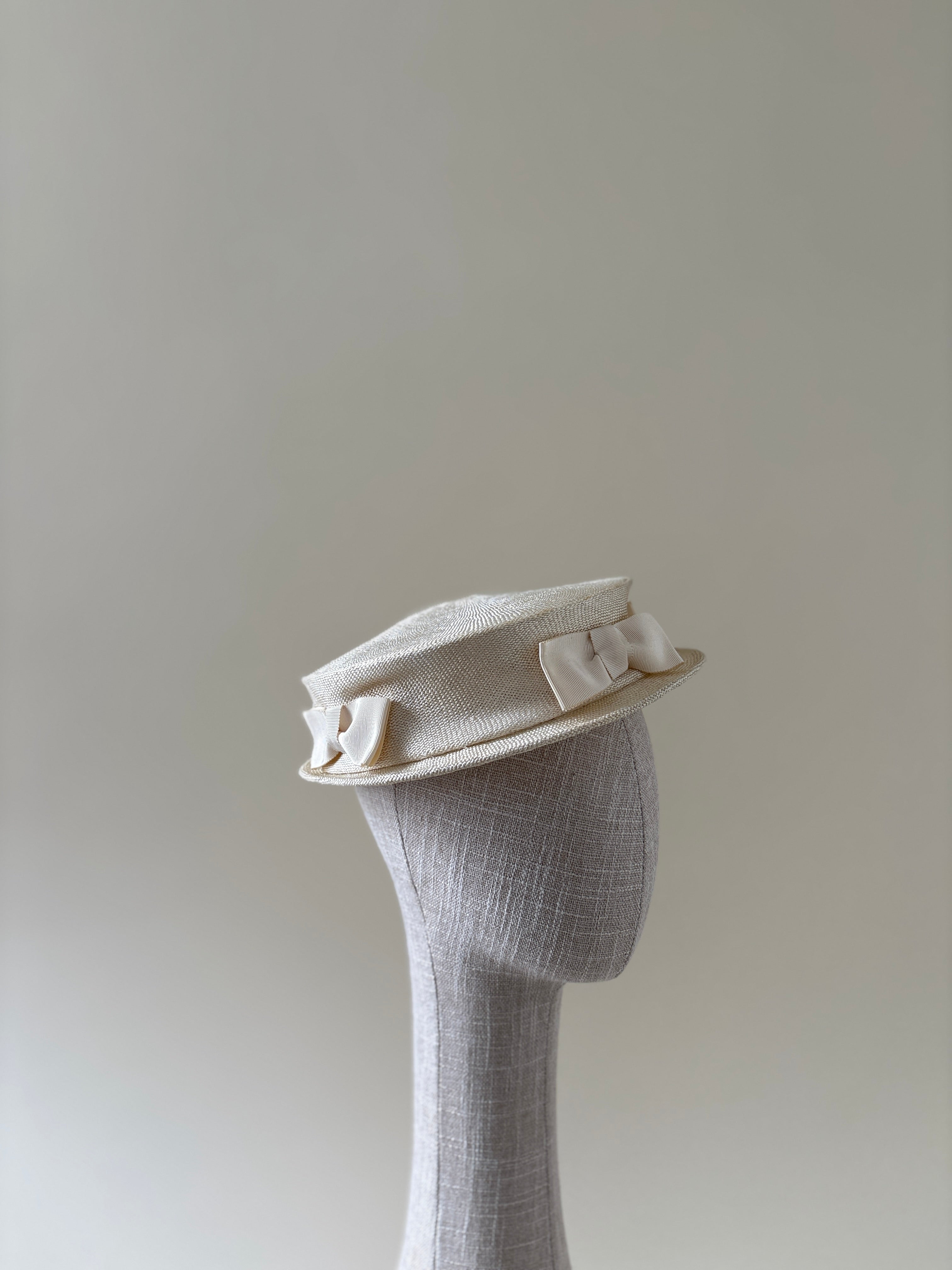 Vintage hat #028 | 1950's White straw boater hat with white ribbon bows