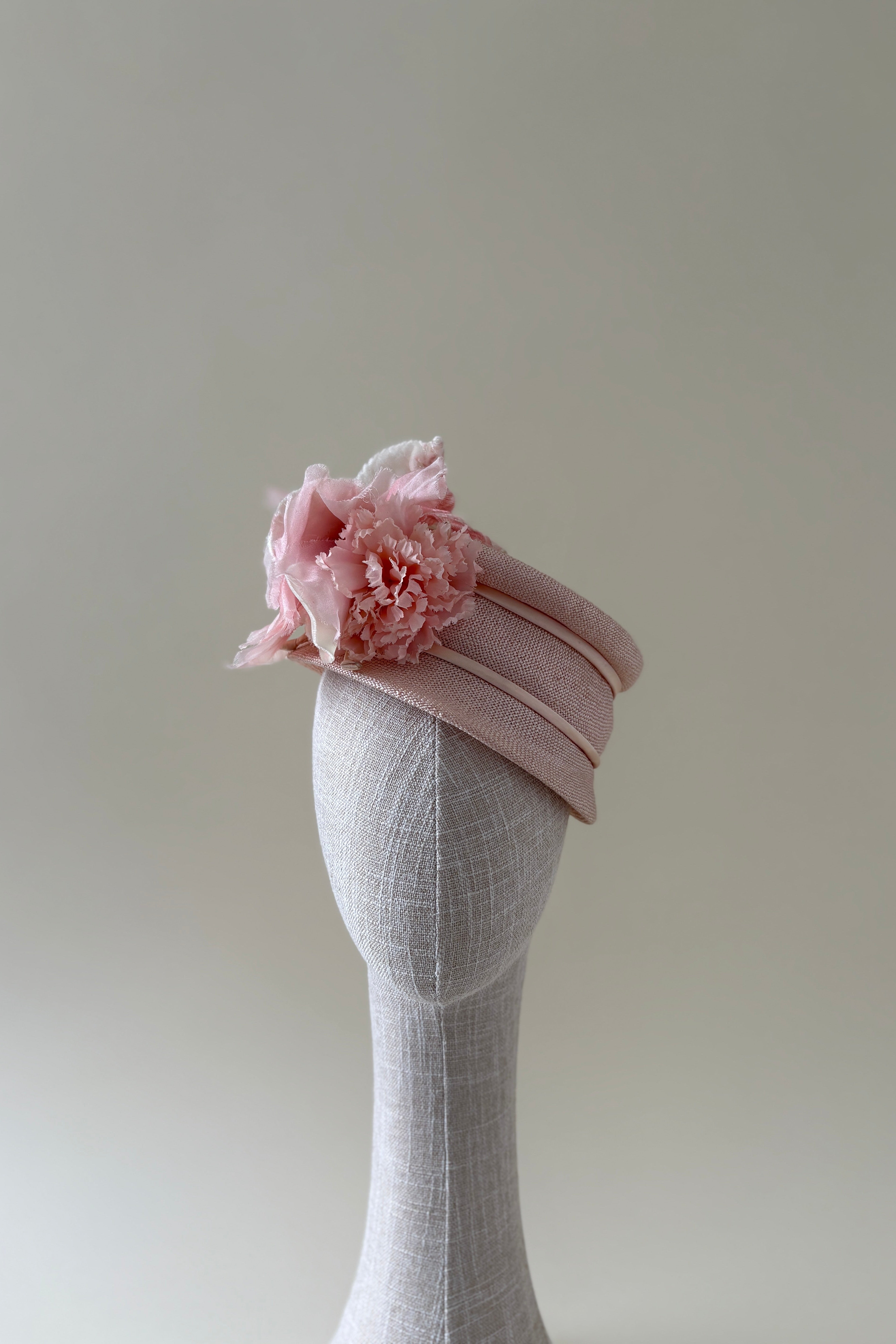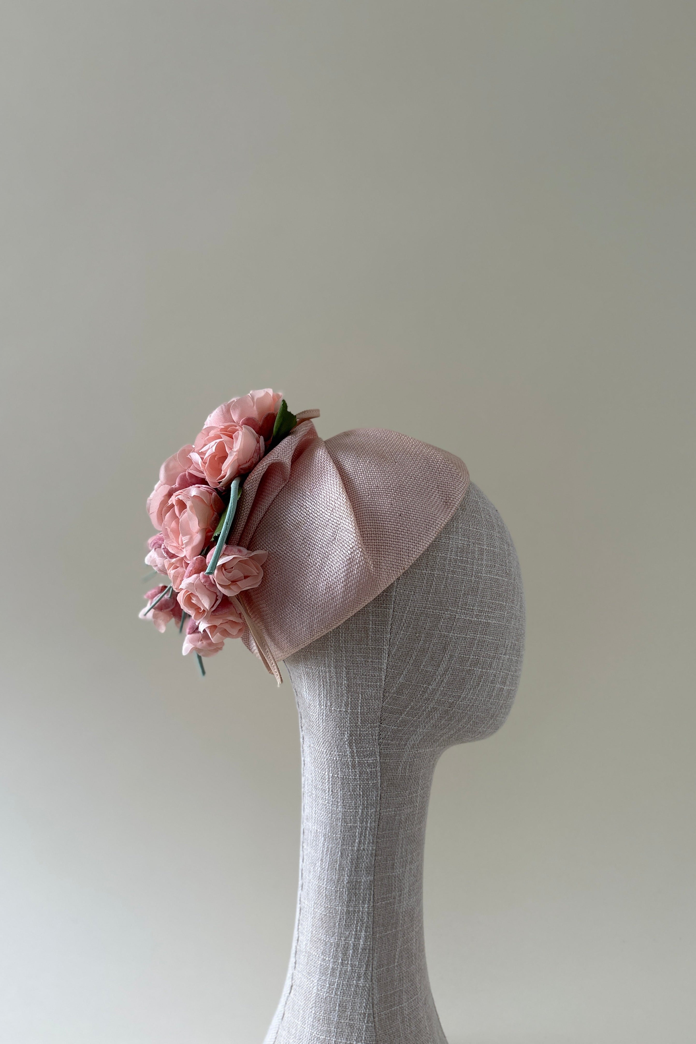 Vintage hat #006 | 1960's pink straw half hat with flower trims
