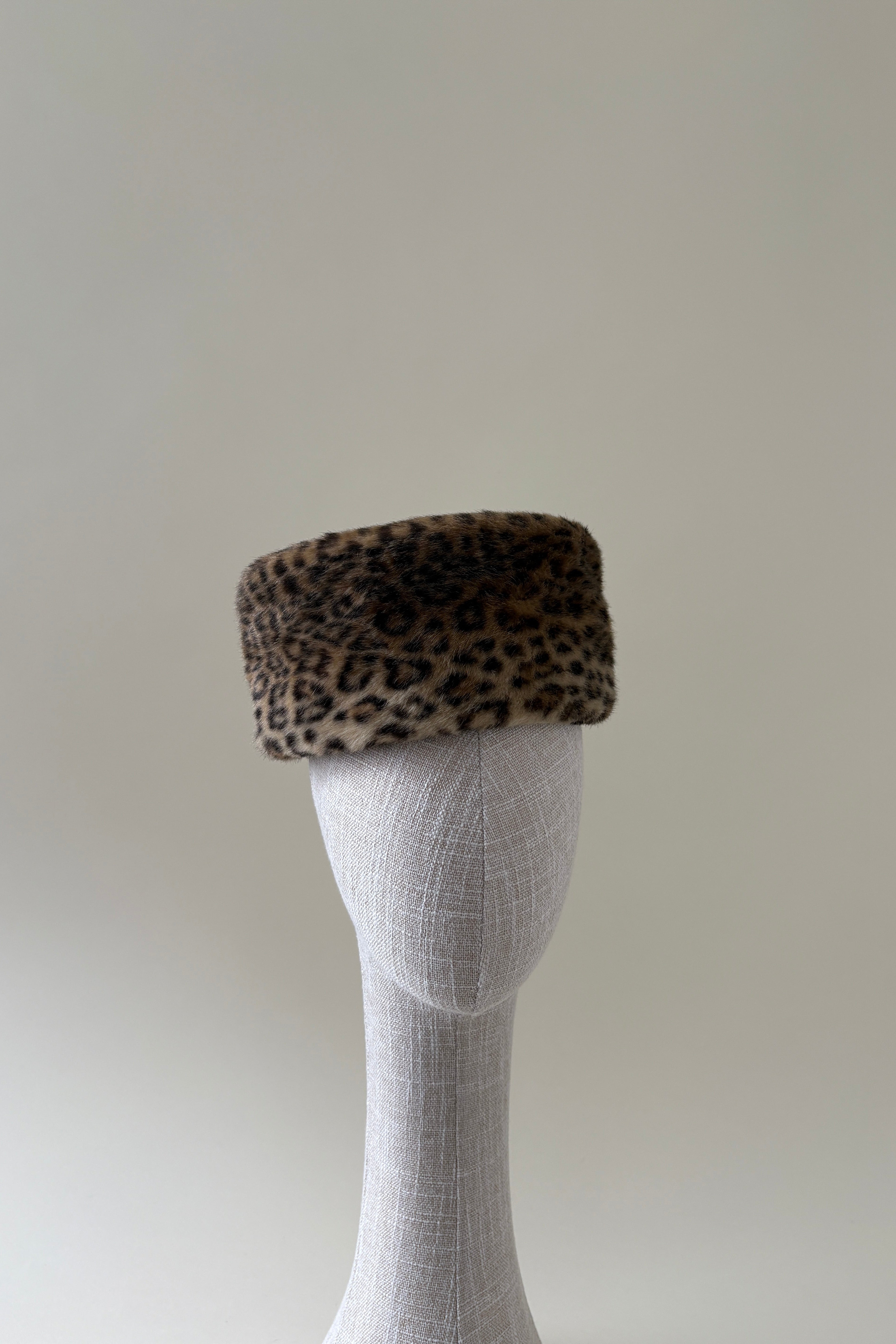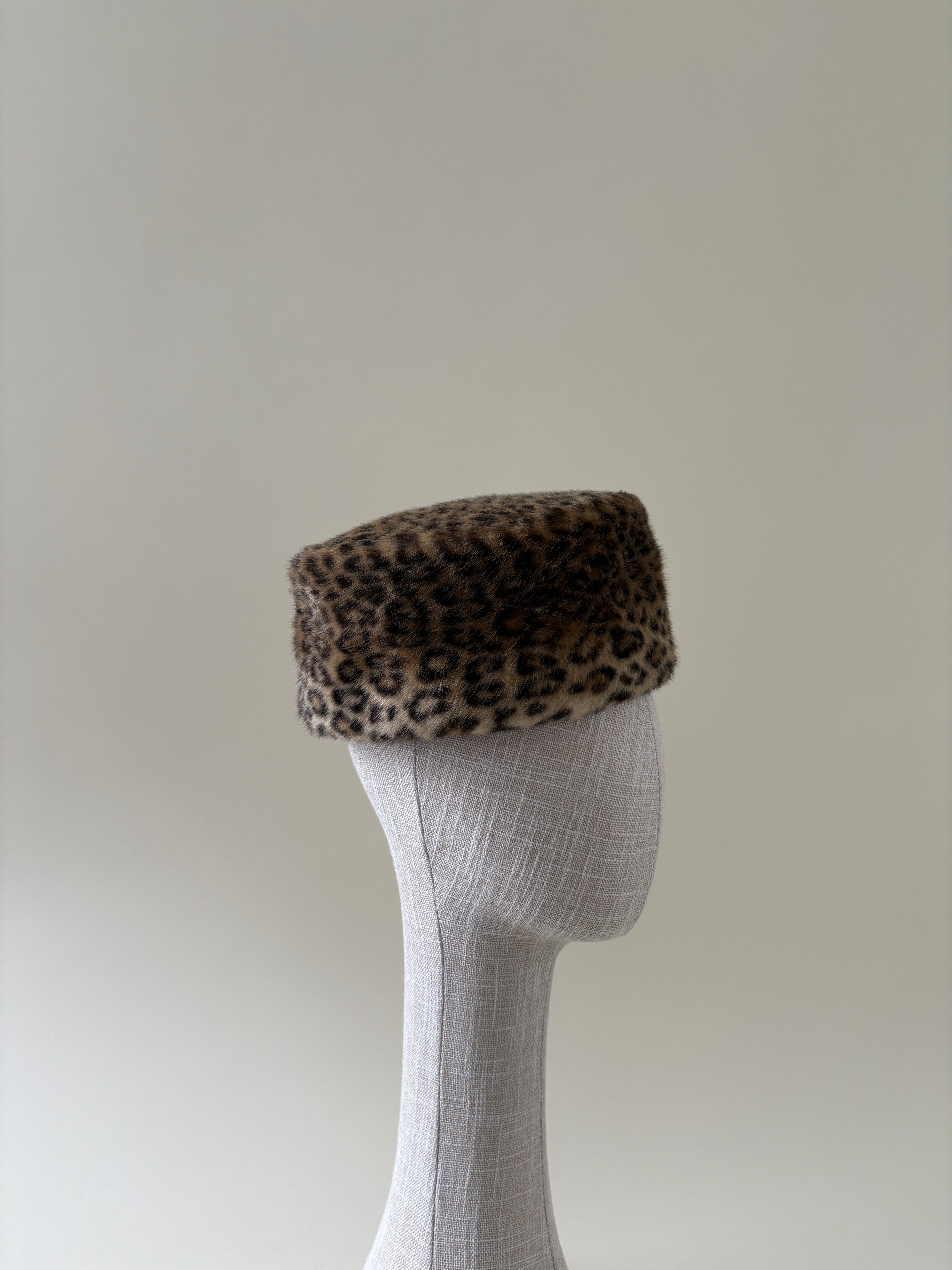 Vintage hat #042 | 1990's Faux fur leopard pillbox