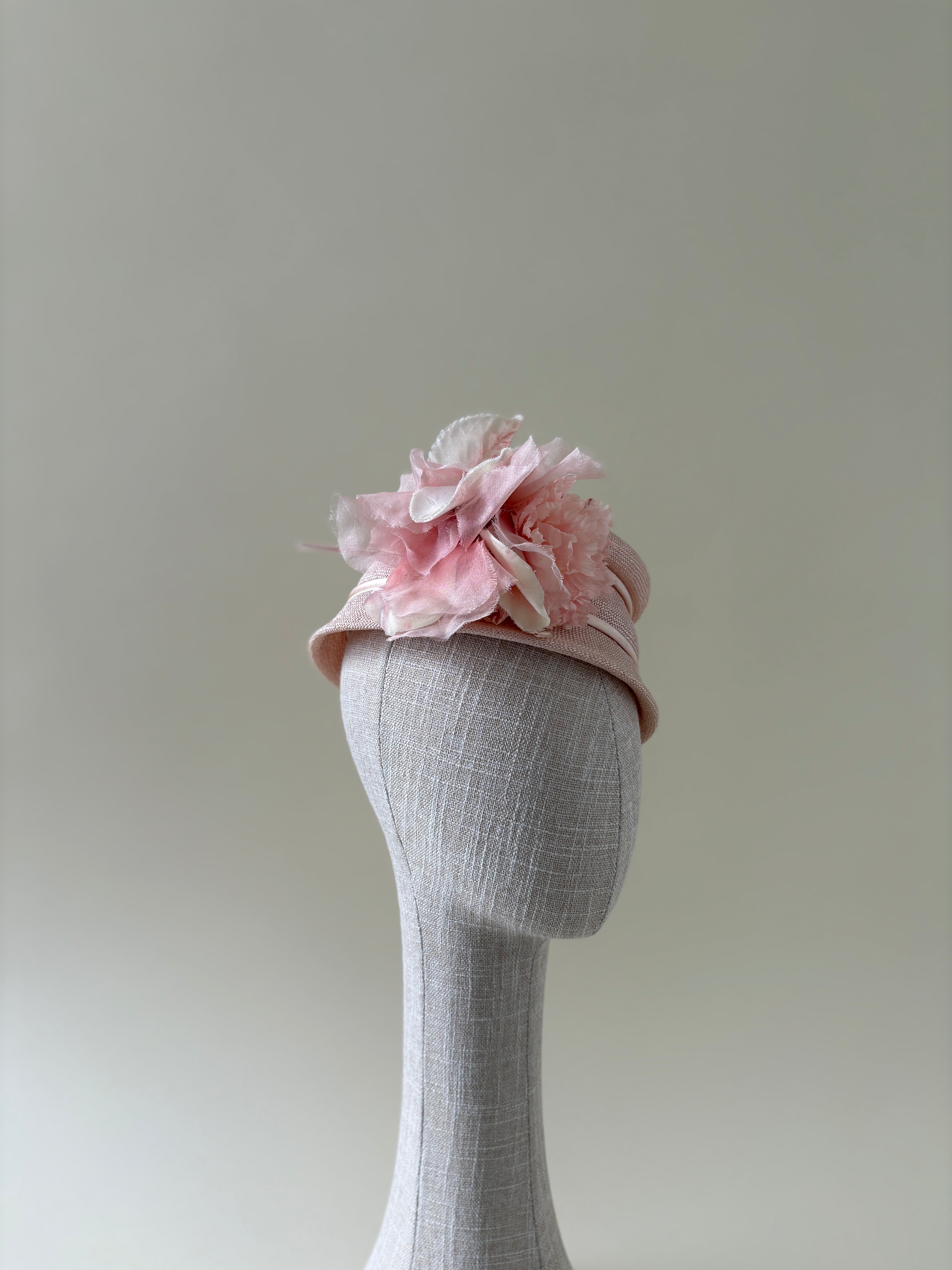 Vintage hat #009 | 1960's pink ramie straw cocktail hat with pink flowers