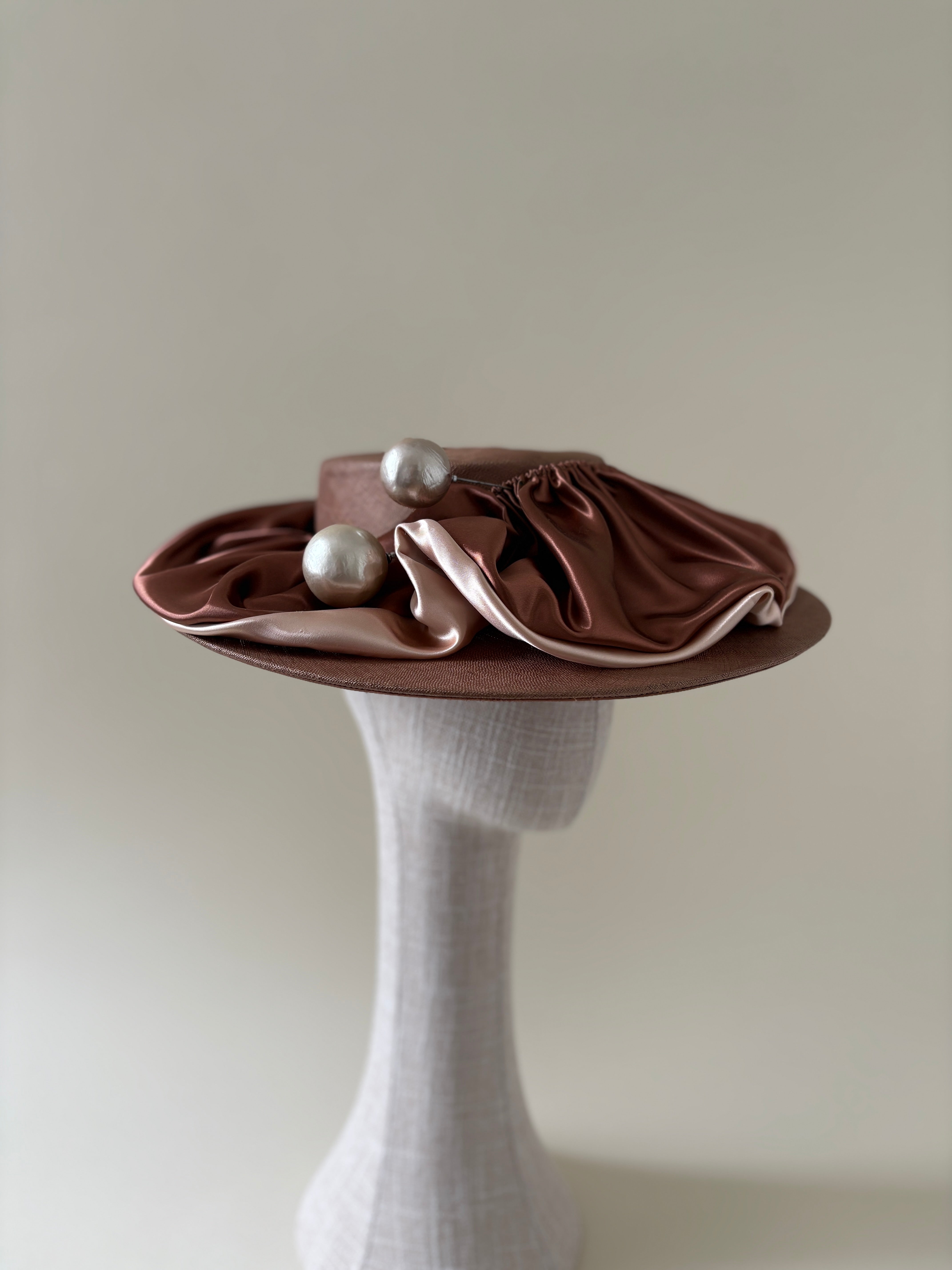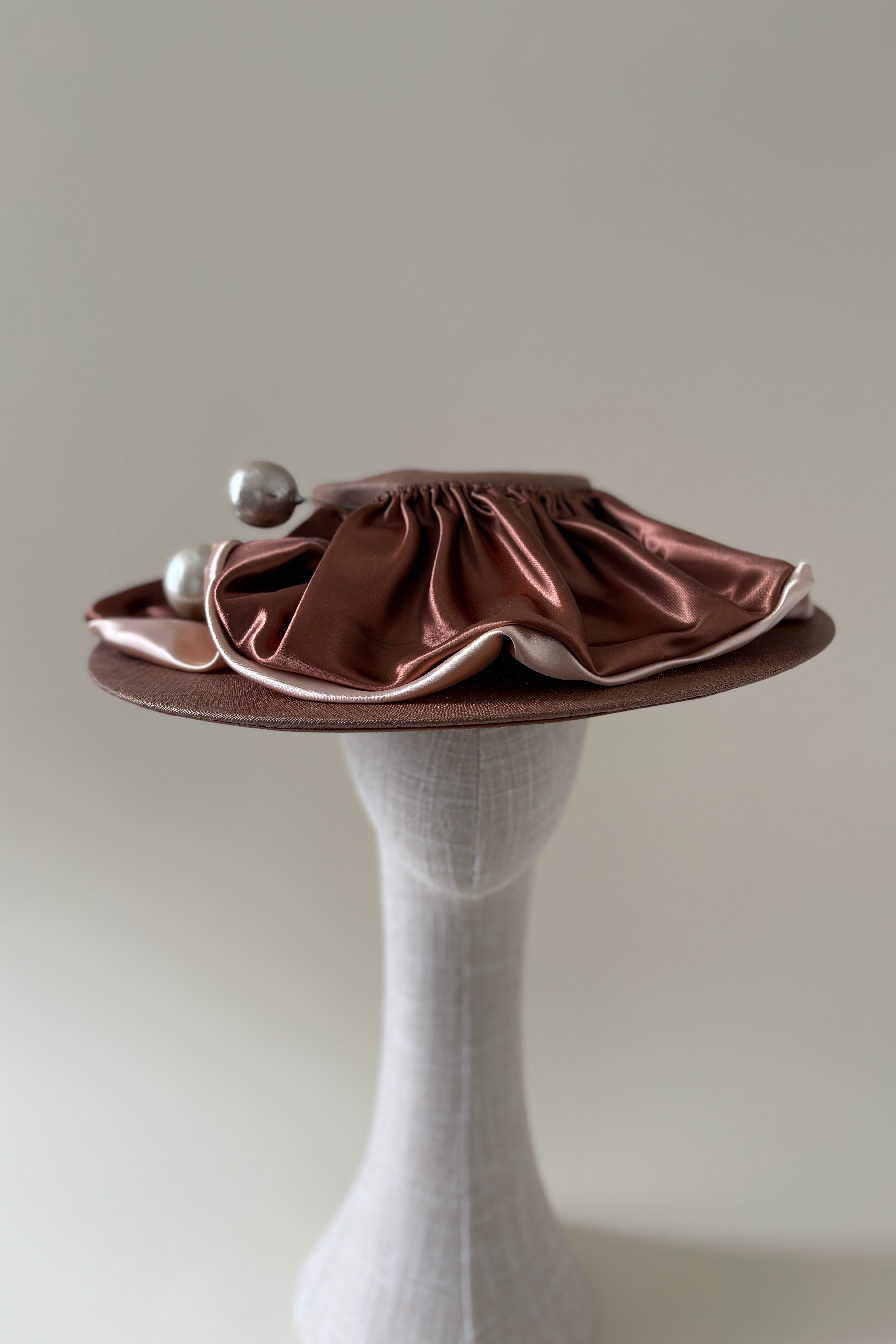 Vintage hat #022 | 1950's Wide brimmed fine straw hat in brown with satin trim