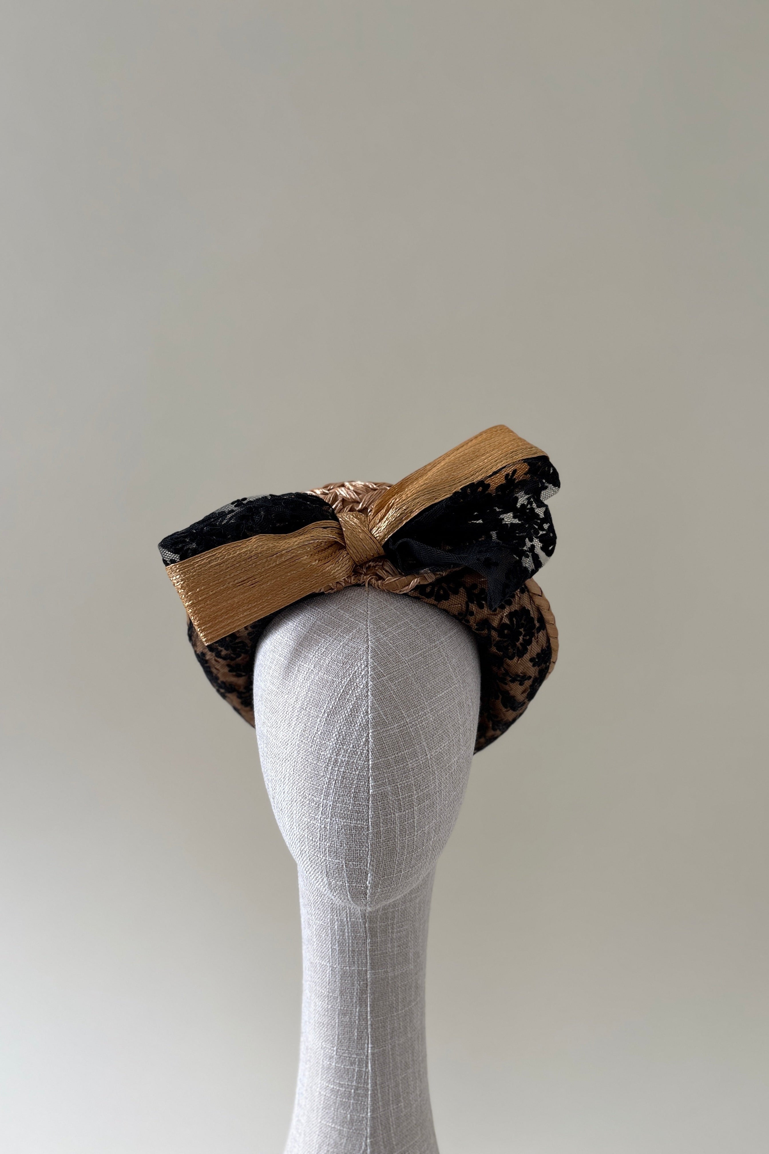 Vintage hat #005 | 1960's Golden straw hat with black lace