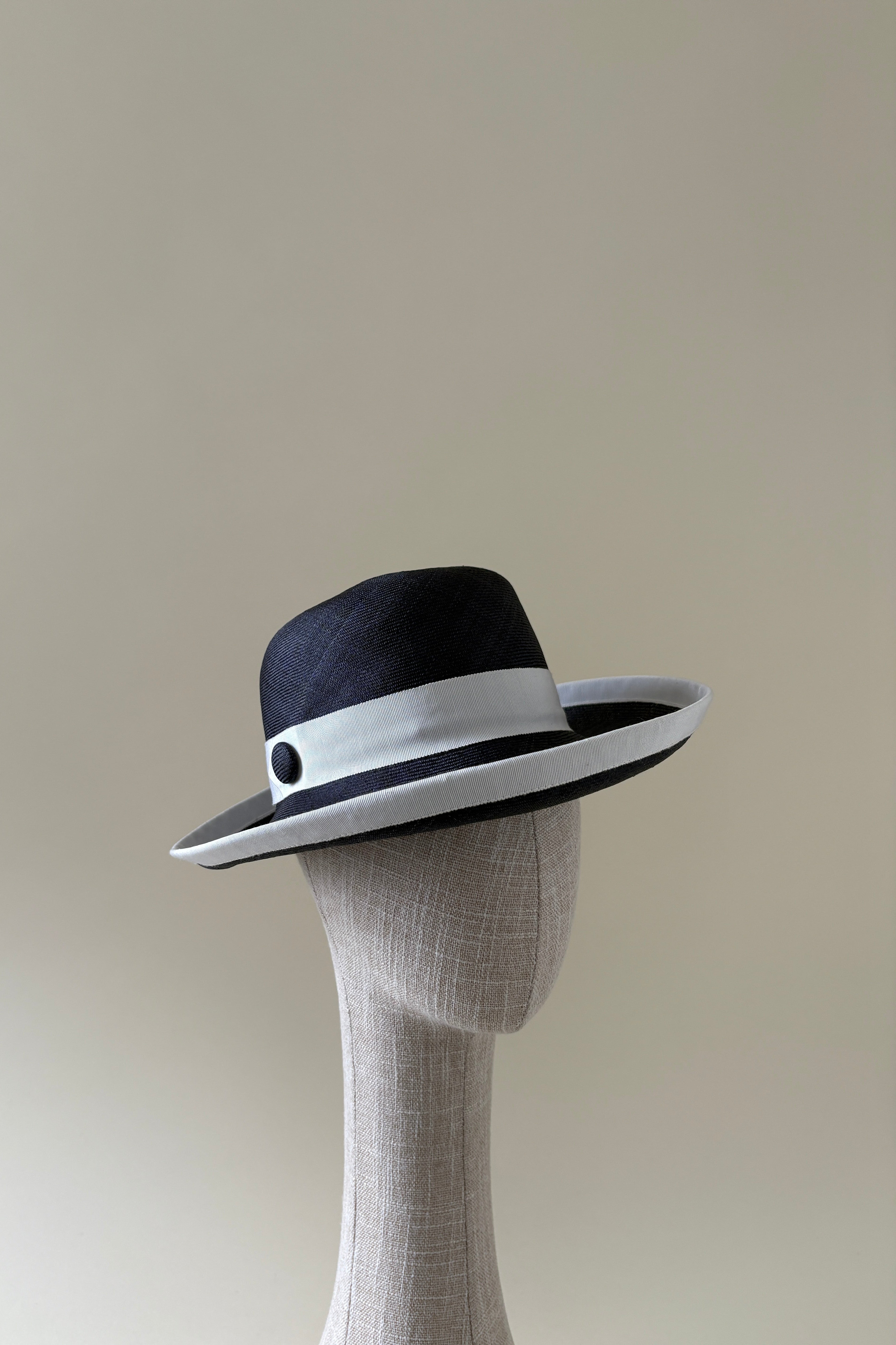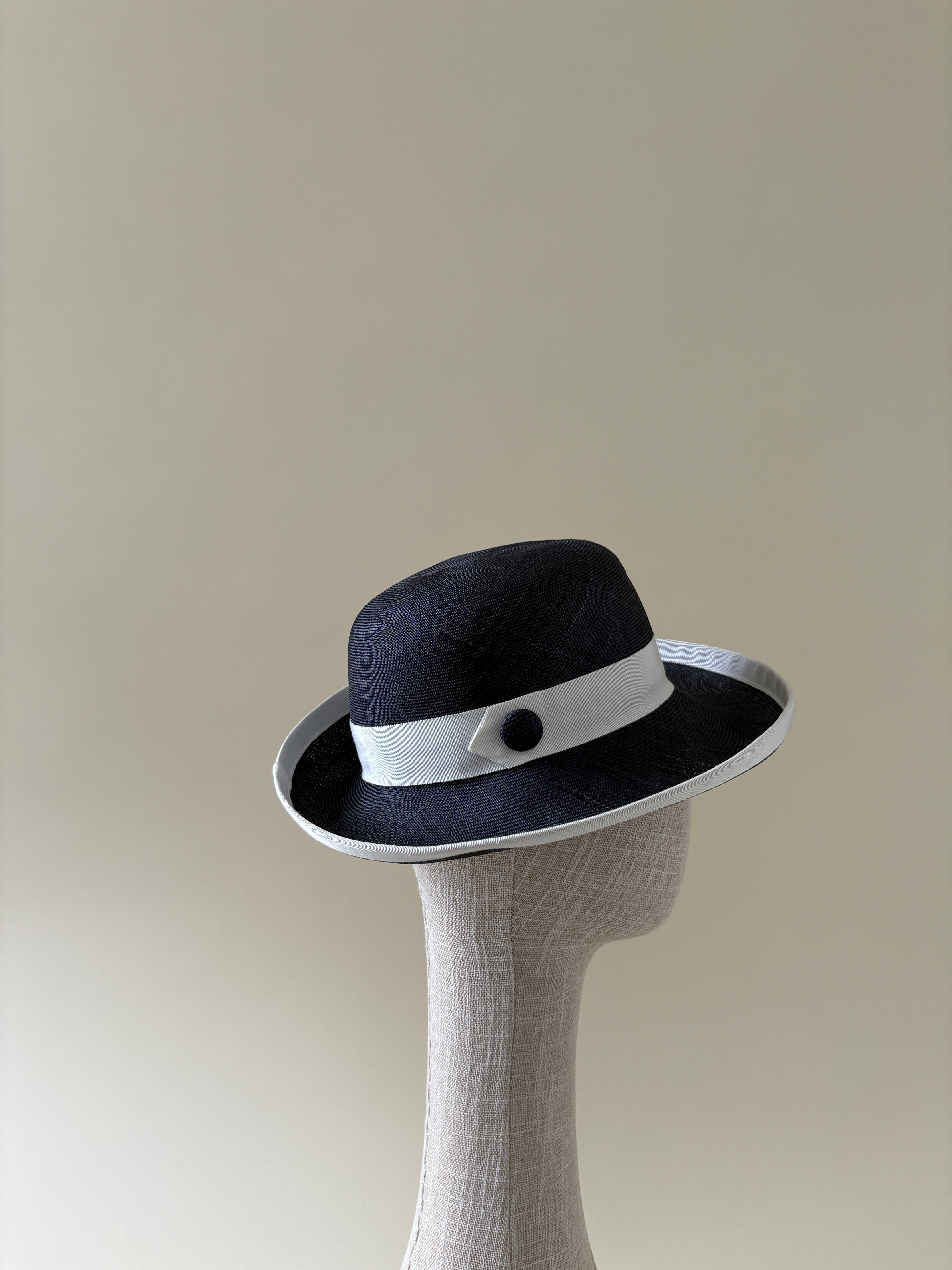 Vintage hat #003 | 1980's Navy and white straw hat