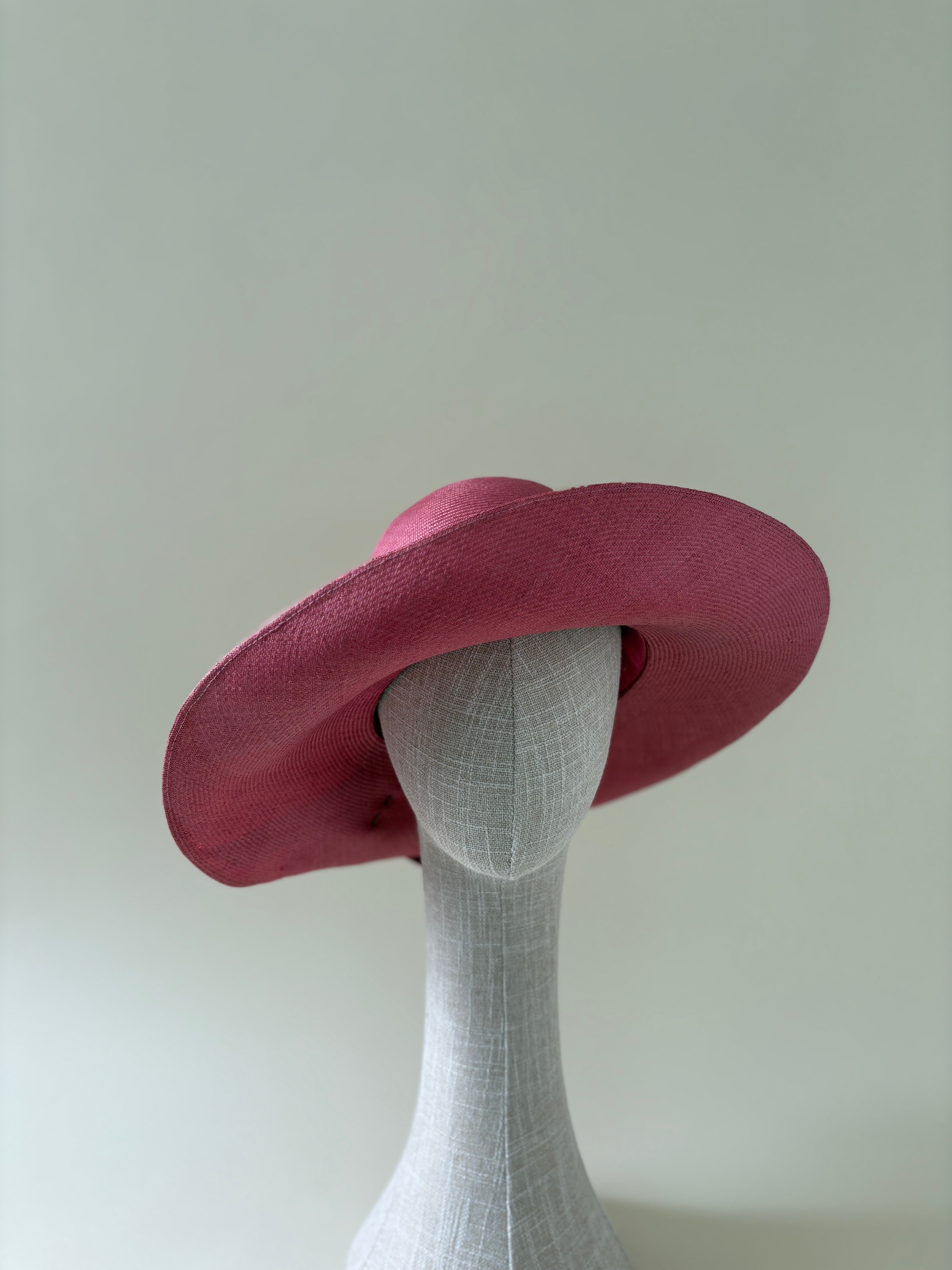 Vintage hat #002 | 1980's wide pink straw hat with flowers